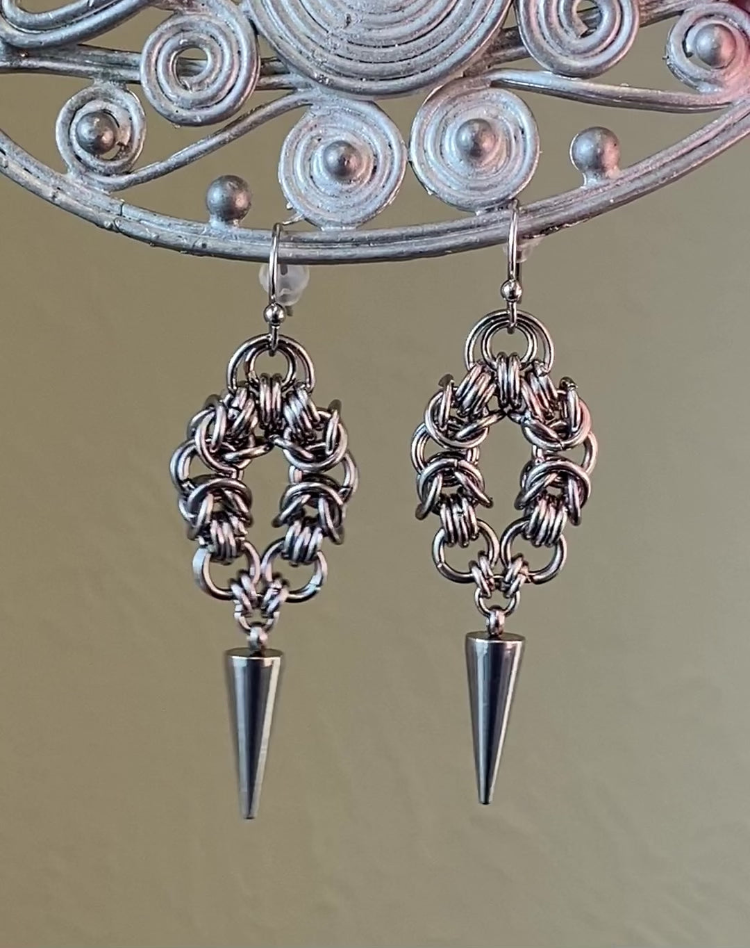 The vulval shape of these earrings offer support to your manifestations. Their connection to the womb is magnetic and creative, and the point of each stainless steel spike acts as a direct path to move your intentions into the physical realm.